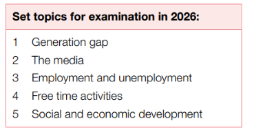 Please note that for component 3 Essay, a set list of 5 topics is selected. This list changes every year.