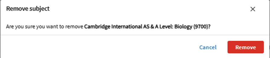 On the homepage, click Add new subject in the My Subjects section. Select the Programme or qualification, then the Subject, and click the blue tick.